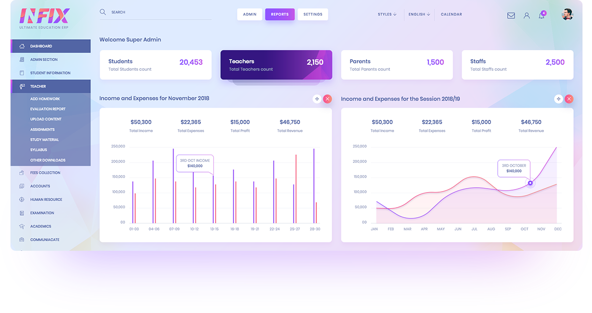 INFIX has all in one place. You’ll find everything what you are looking into education management system software.